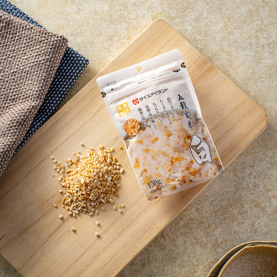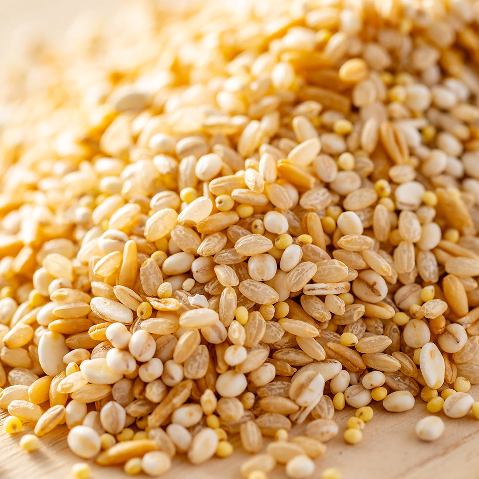 もちキビ、もちアワ、ヒエ、高キビ、オーツ麦を配合した、使いやすいサイズのブレンド雑穀です。